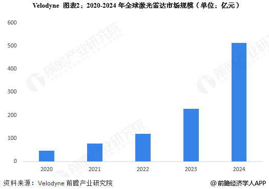 根据Velodyne披露的数据显示,2020-2024年全球激光雷达市场规模逐年增加,2024年达到512亿元,同比实现翻番。