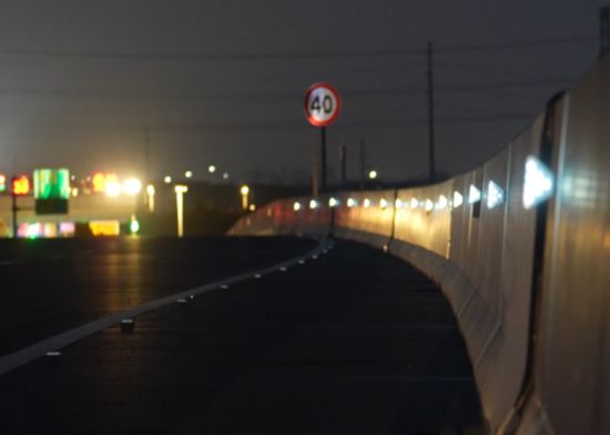线个线性诱导黄灯,形成连续、均匀的光带。该系统通过规律性排列与每秒2次的柔和频闪,在夜间为驾驶员提供明确、舒缓的视觉引导,有效减轻视觉疲劳,保持行车轨迹稳定,尤其在超过2公里的长直线或缓弯路段,诱导效果更为突出,如一条流动的光带,持续引导行车方向。